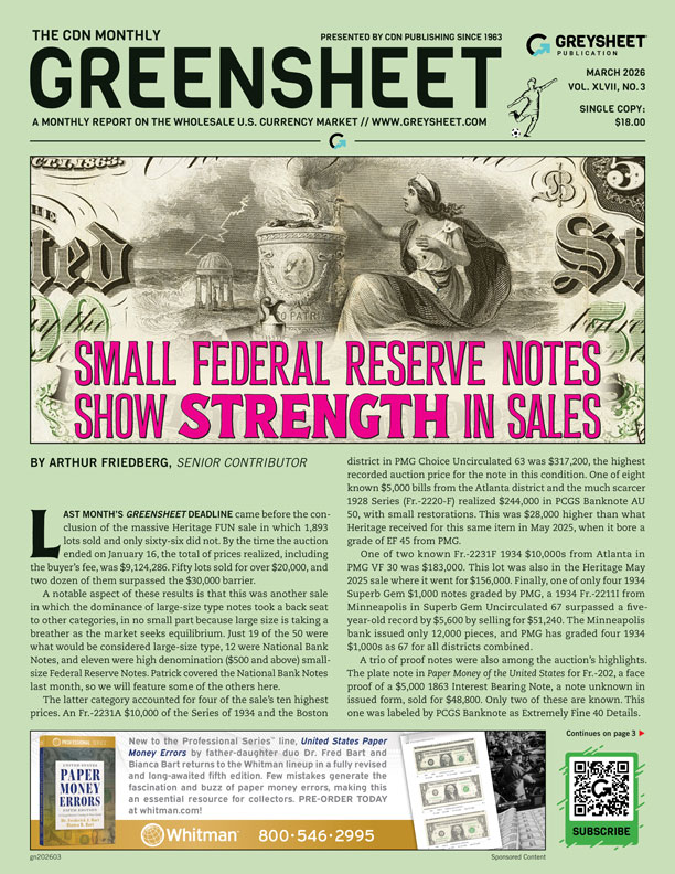The 2023 Edition fills 472 pages of this rare and indispensable guide to colonial paper money includes all-new pricing by the CDN editors of Greensheet, and now includes hundreds of color images.