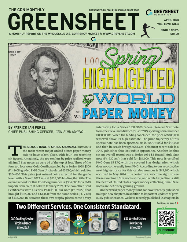 The 23rd Edition of the industry-standard reference book for U.S. Paper Money. A must-have companion for users of the Greensheet wholesale price guide.