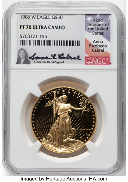 1986-W Gold Eagle G$50 NGC PR70 DCAM