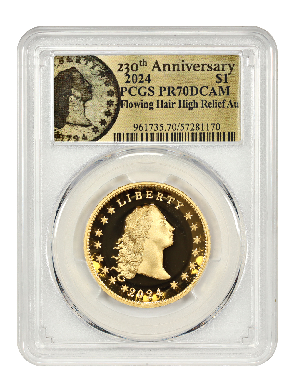 2024-(W) 230th Anniversary Flowing Hair, Gold, 230 Privy G$1 PCGS PR70 DCAM