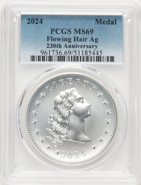 2024 230th Anniversary Flowing Hair, Silver Medal PCGS MS69