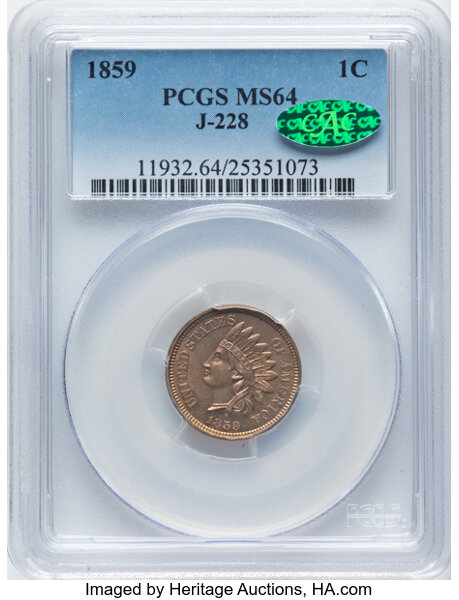1859 Copper, Shield Reverse, J-228 P1c PCGS MS64 CAC