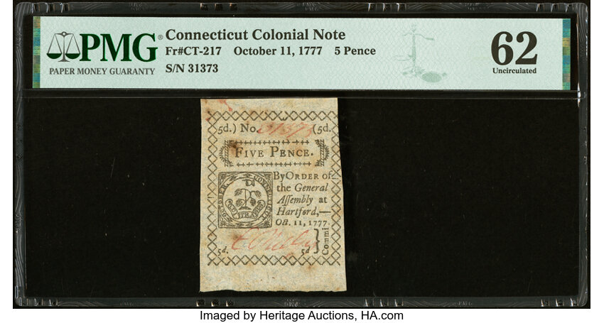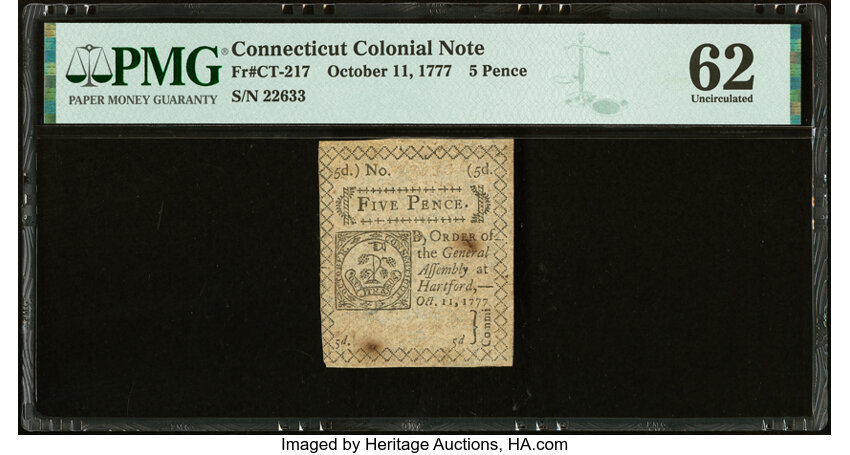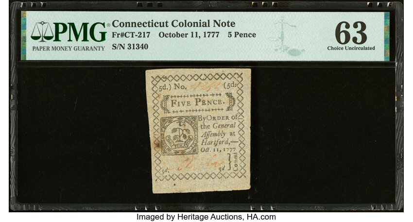 Oct 11, 1777 Connecticut 5d PMG CU63 (Fr. CT217)