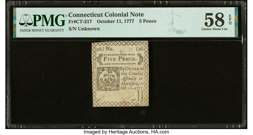 Oct 11, 1777 Connecticut 5d PMG AU58 (Fr. CT217)