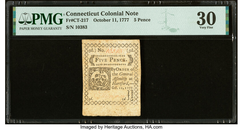 Oct 11, 1777 Connecticut 5d PMG VF30 (Fr. CT217)