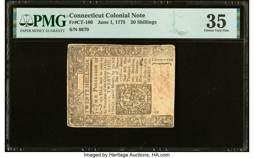 Jun 1, 1775 Connecticut 20s PMG VF35 (Fr. CT186)