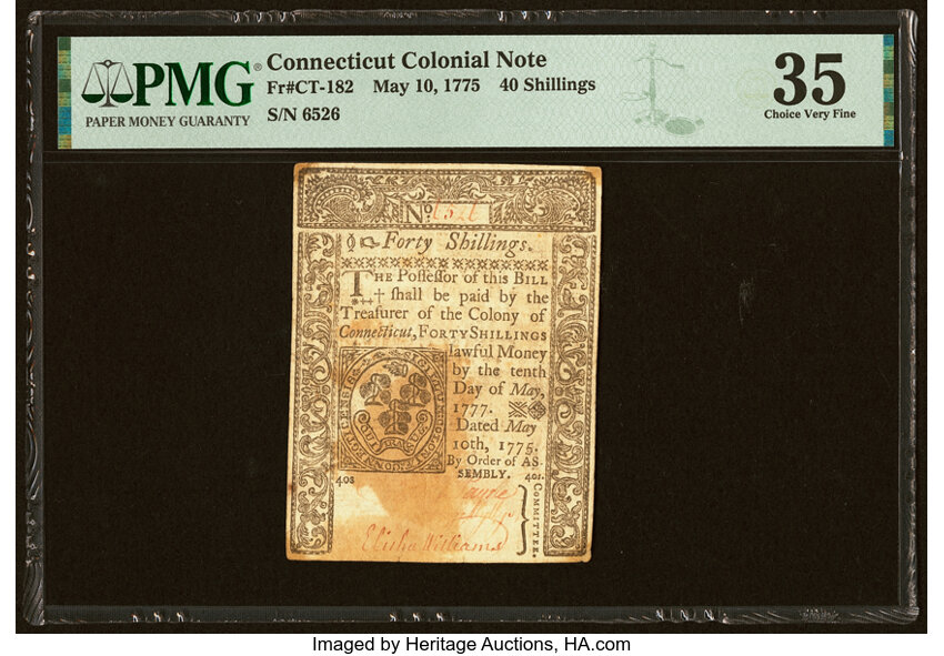 May 10, 1775 Connecticut 40s PMG VF35 (Fr. CT182)