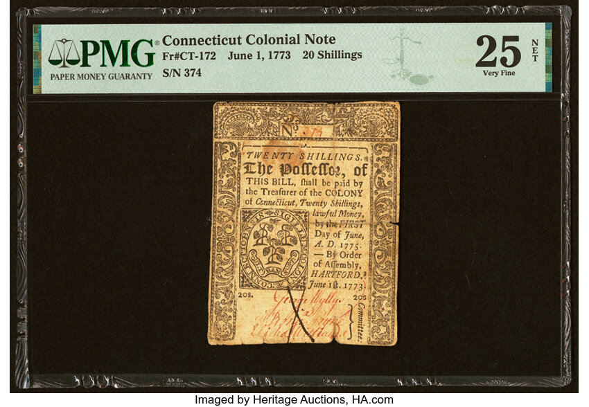 Jun 1, 1773 Connecticut 20s PMG VF25 (Fr. CT172)