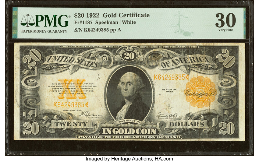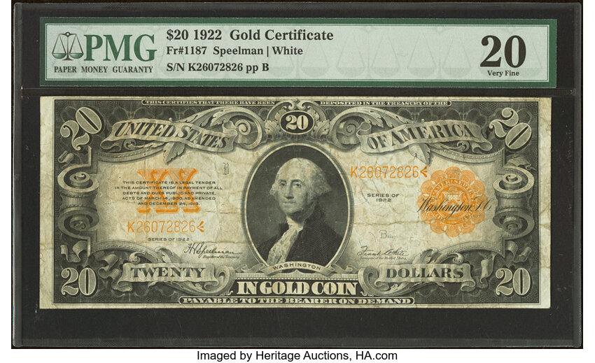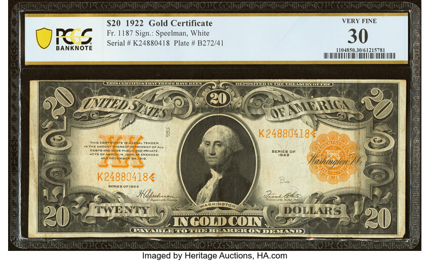 1922 $20 PCGS VF30 (Fr. 1187)