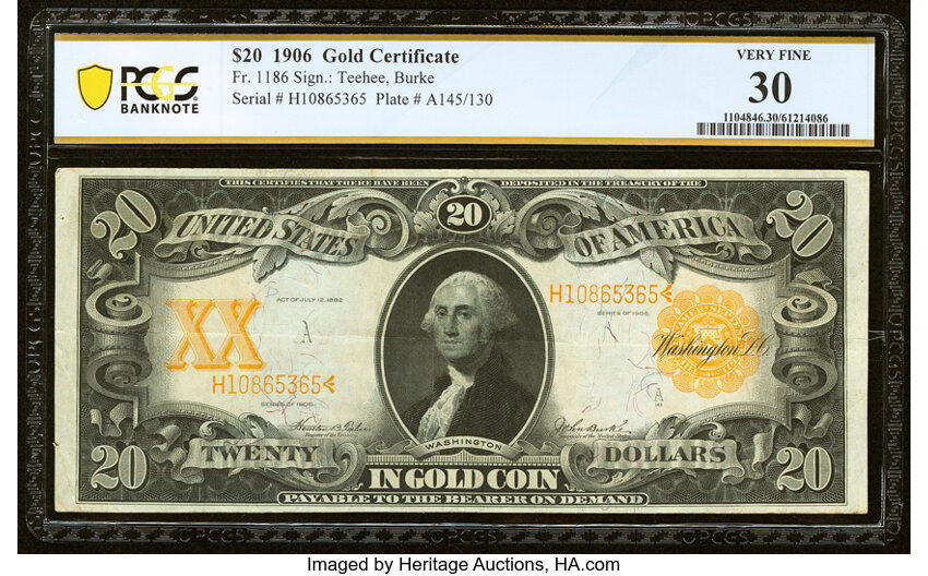 1906 $20 PCGS VF30 (Fr. 1186)