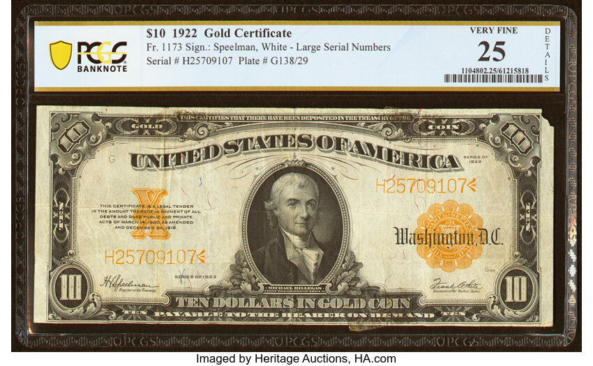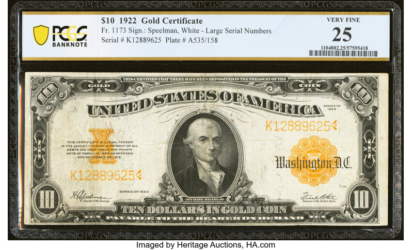 1922 $10 PCGS VF25 (Fr. 1173)