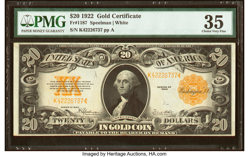 1922 $20 PMG VF35 (Fr. 1187)
