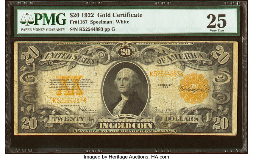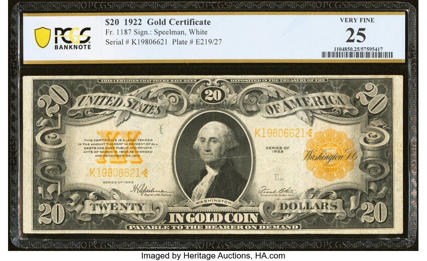 1922 $20 PCGS VF25 (Fr. 1187)