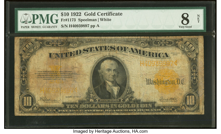 1922 $10 PMG VG8 (Fr. 1173)