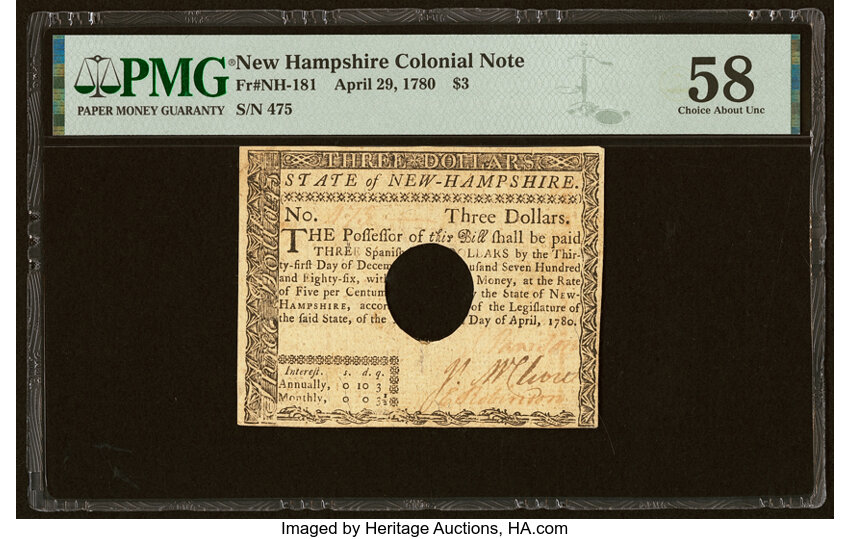 Apr 29, 1780 New Hampshire $3 PMG AU58 (Fr. NH181)