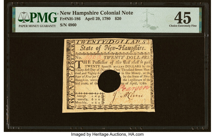 Apr 29, 1780 New Hampshire $20 PMG XF45 (Fr. NH186)