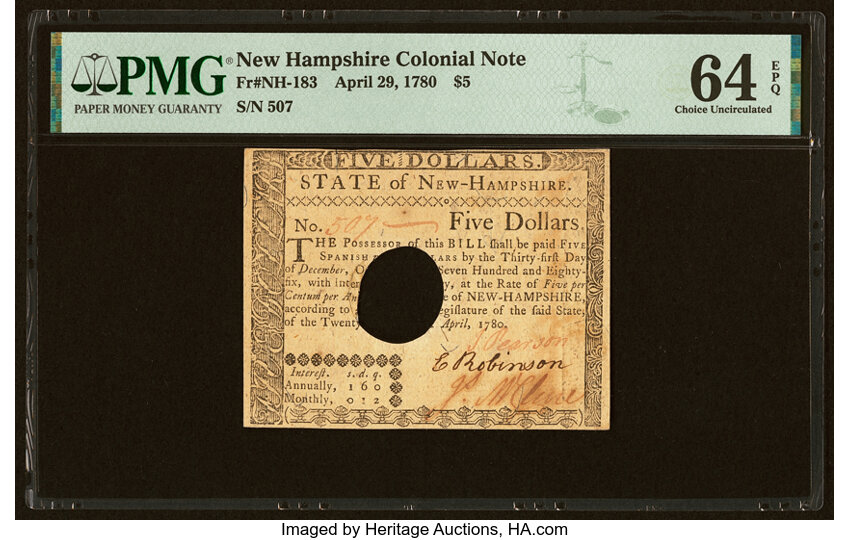 Apr 29, 1780 New Hampshire $5 PMG CU64 (Fr. NH183)