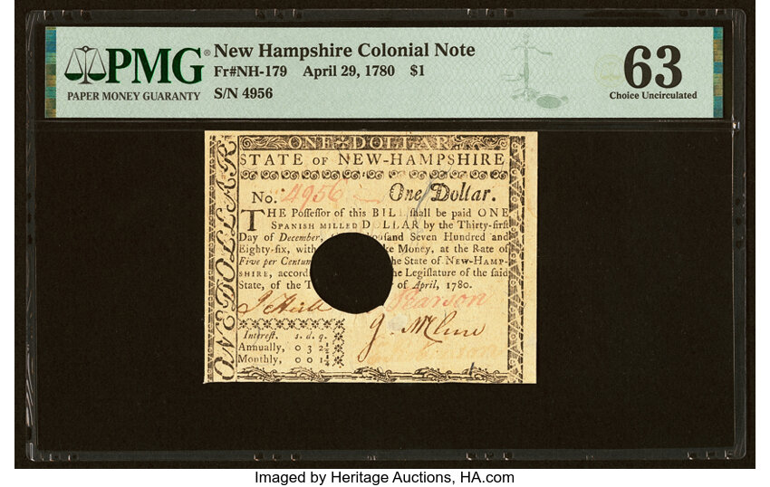 Apr 29, 1780 New Hampshire $1 PMG CU63 (Fr. NH179)