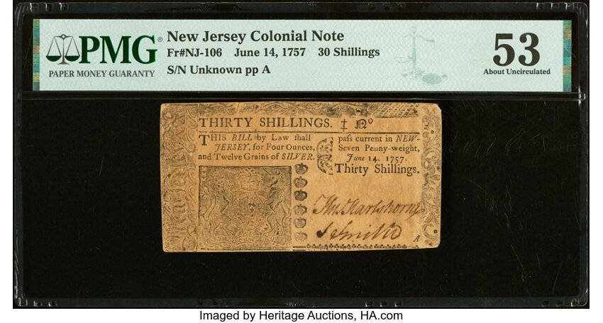 Jun 14, 1757 New Jersey 30s PMG AU53 (Fr. NJ106)