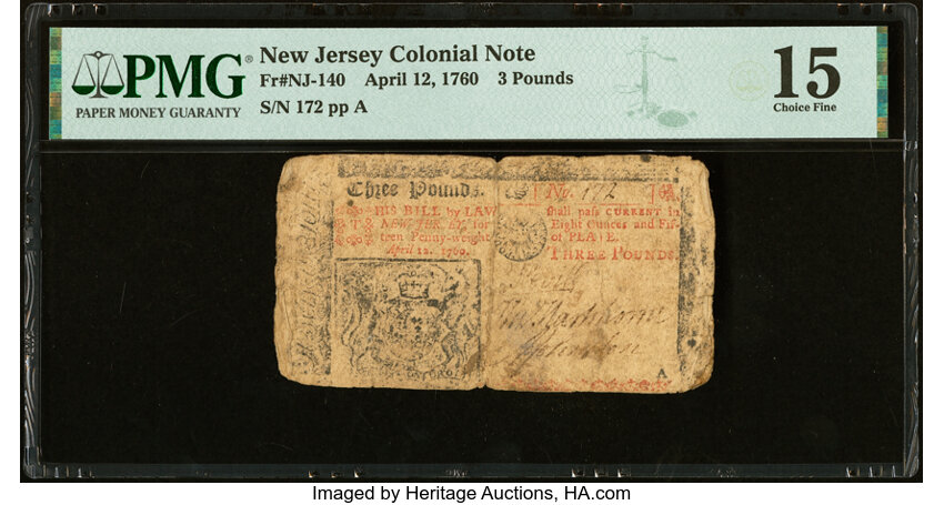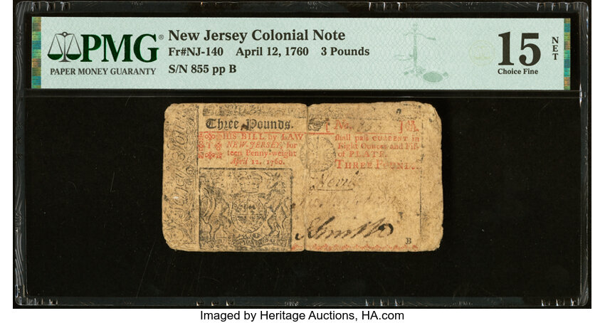 Apr 12, 1760 New Jersey £3 PMG F15 (Fr. NJ140)