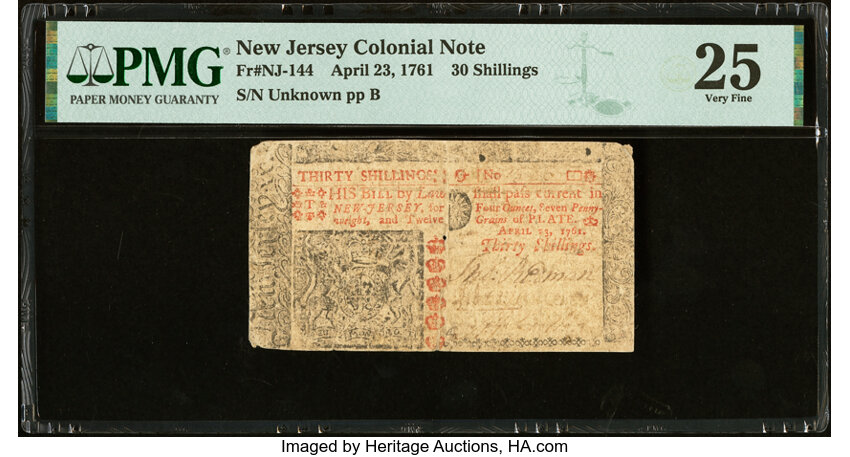 Apr 23, 1761 New Jersey 30s PMG VF25 (Fr. NJ144)