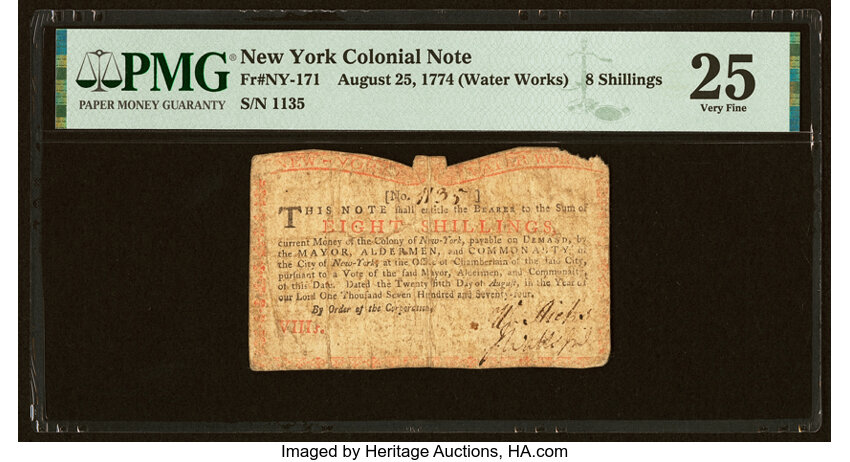 Aug 25, 1774 New York 8s PMG VF25 (Fr. NY171)