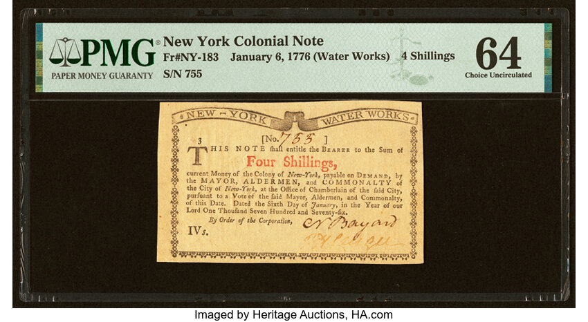 Jan 6, 1776 New York 4s PMG CU64 (Fr. NY183)