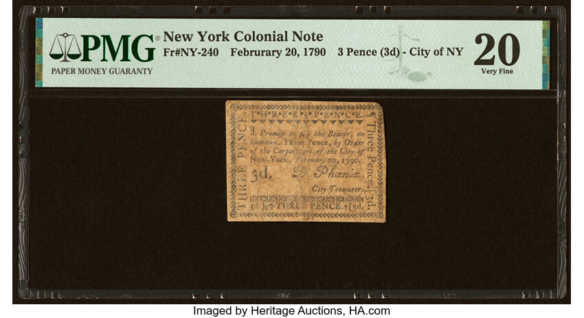 Feb 20, 1790 New York, New York City 3d PMG VF25 (Fr. NY240)