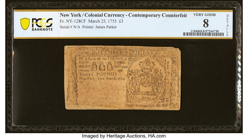 Mar 25, 1755 New York £3 PCGS VG8 (Fr. NY128)