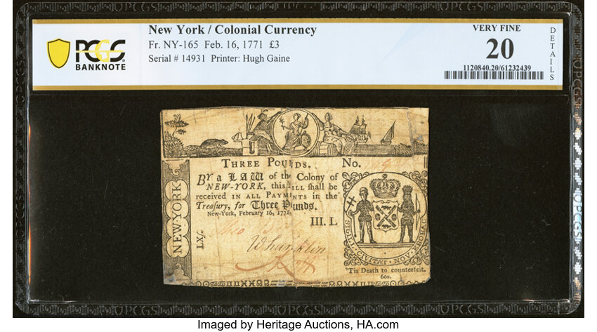 Feb 16, 1771 New York £3 PCGS VF20 (Fr. NY165)