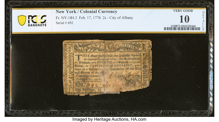 Jan 6, 1776 New York 8s PCGS VG10 (Fr. NY184)