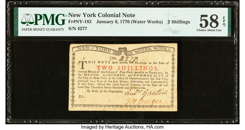 Jan 6, 1776 New York 2s PMG AU58 (Fr. NY182)