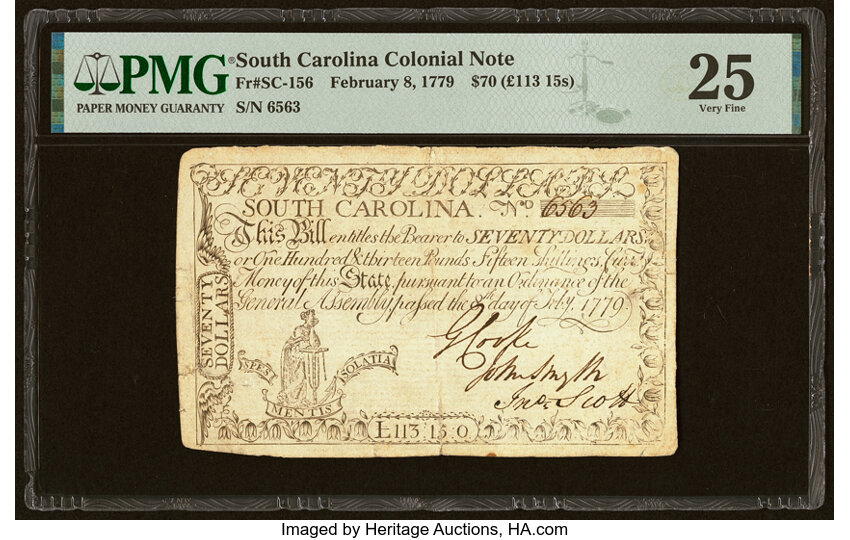 Feb 8, 1779 South Carolina $70 PMG VF25 (Fr. SC156)