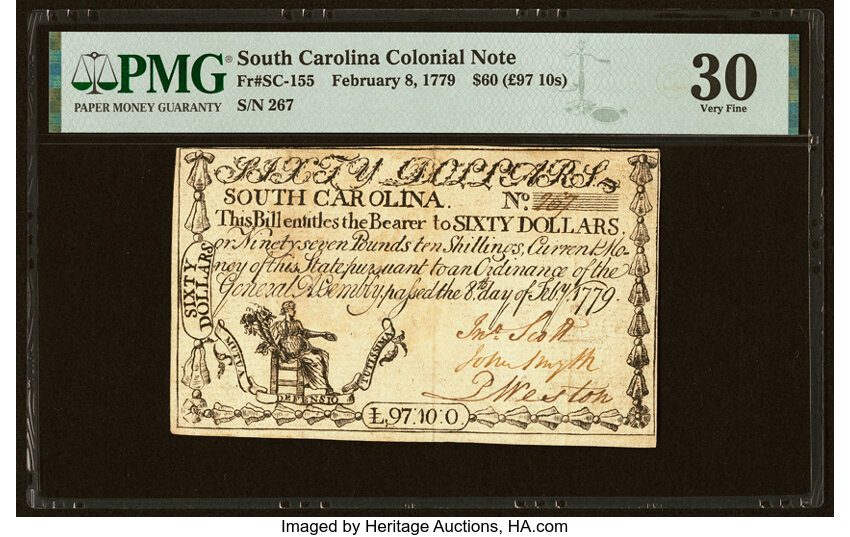Feb 8, 1779 South Carolina $60 PMG VF30 (Fr. SC155)