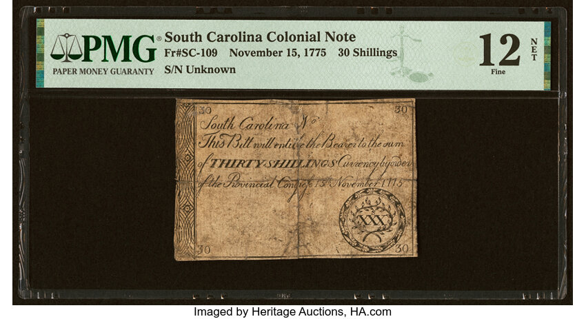 Nov 15, 1775 South Carolina 30s PMG F12 (Fr. SC109)