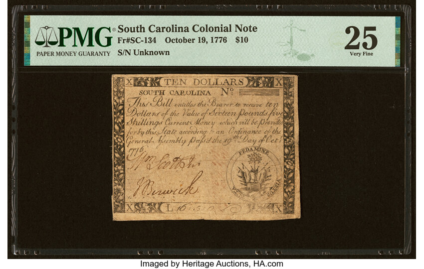 Oct 19, 1776 South Carolina $10 PMG VF25 (Fr. SC134)