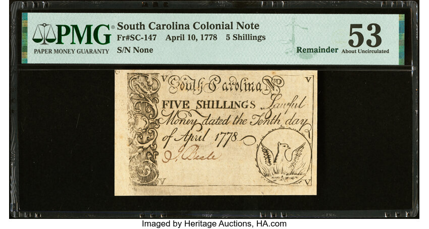 Apr 10, 1778 South Carolina 5s PMG AU53 (Fr. SC147)