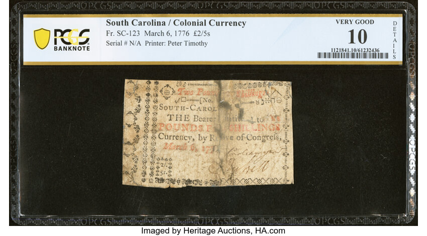 Mar 6, 1776 South Carolina £2 5s PCGS VG10 (Fr. SC123)