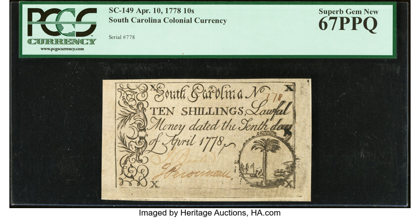 Apr 10, 1778 South Carolina 10s PCGS CU67 (Fr. SC149)