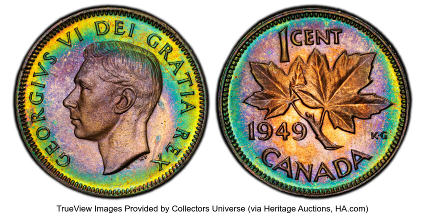 1949 A Points to Denticle 1c PCGS MS65 RB