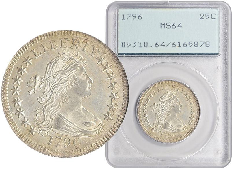 1796 Draped Bust Quarter Dollar, MS64, PCGS, OGH. Sold January 19, 2020 for $303,750.00 by GreatCollections.