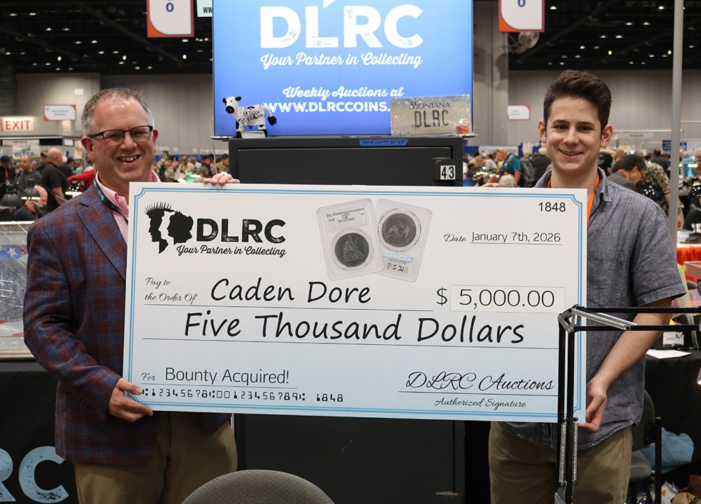 He didn’t win a game show or even last week’s Powerball, but Caden Dore stood proudly nevertheless, holding an oversized check for $5,000! In August 2025, DLRC (formerly David Lawrence Rare Coins) posted a bounty on three Proof Silver Dollars on behalf of the D.L. Hansen Collection. The three coins—dated 1801, 1841, and 1848—are the lone missing pieces from the Proof Silver Dollar Collection. After a protracted search of more than 6 years, the first of the three pieces has been tracked down!