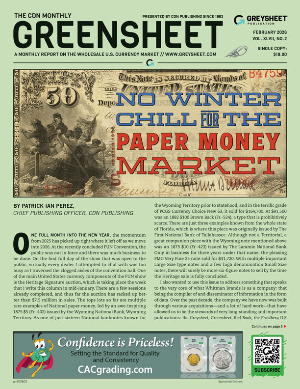 With the launch of Showcase, DLRC’s proprietary website and inventory software 2 years ago, they have garnered several awards, including “Best Numismatic Website” by the Numismatic Literary Guild (NLG) and they continue to improve the offerings and features on a regular basis. As John Brush, President of DLRC states, “We’ve been looking to expand our offerings of currency for quite some time, and this collection really spurred us into focusing on the website development so that we can better highlight our offerings.” Added Brush, “While currency isn’t our main focus, we understand that it’s a part of the numismatic collecting heritage and we’re excited to offer our expertise to an even wider audience.”