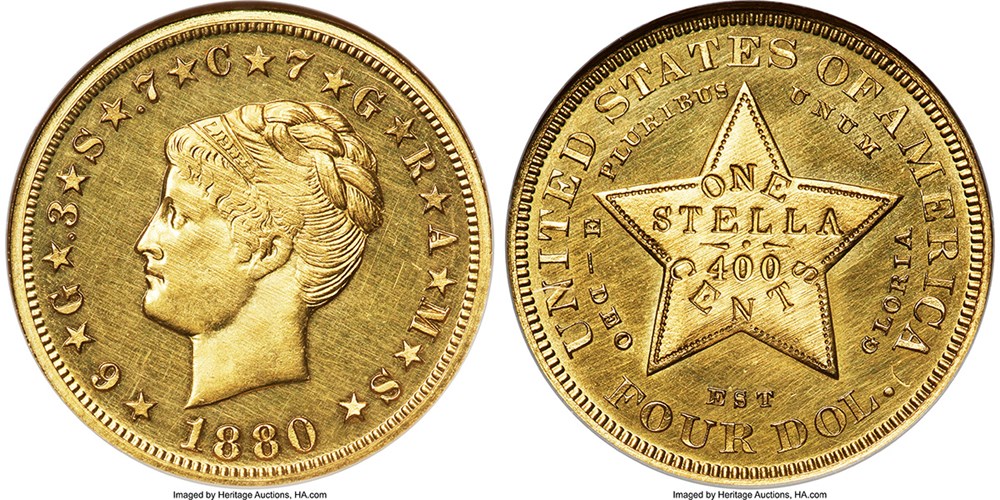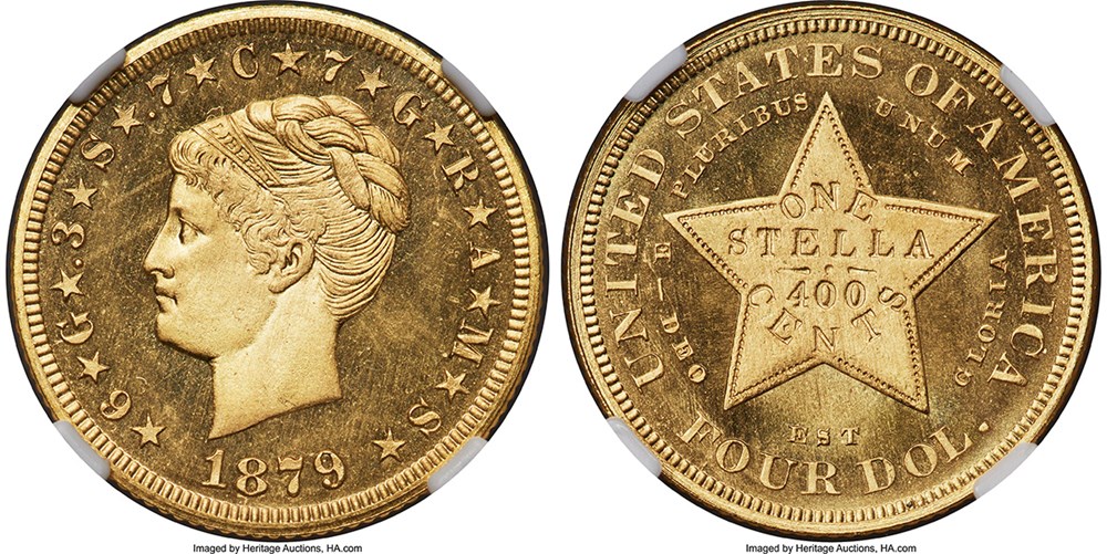 Stellas have long been among the most popular U.S. coins, eagerly pursued by the most serious of collectors. Struck by the U.S. mint in 1879-80, stellas are pattern coins never meant for general circulation, an experiment to create an international coin that would more closely align U.S. and European currency.