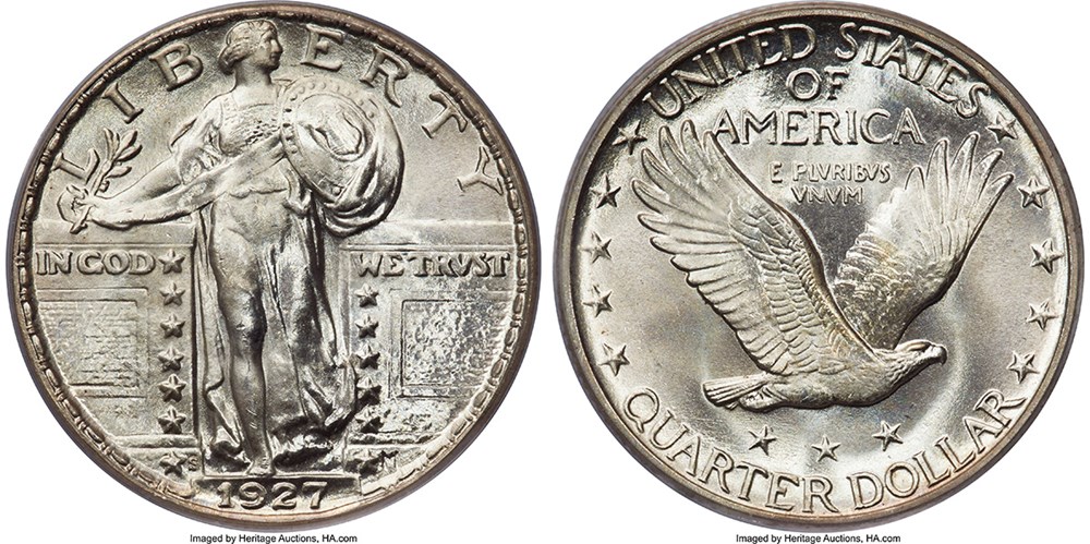 Another treasure from the collection is a 1927-S Quarter, MS65+ Full Head PCGS. CAC that has not been seen at Heritage in nearly two decades, and 16 years since it was offered at auction, evidence of how tightly the best specimens are held by collectors. There are just eight Full Head 1927-S quarters that have been publicly documented MS65 or finer, the finest of which is an MS66+ Full Head PCGS coin that has never appeared at auction. The example offered here ranks fourth, the only MS65 Full Head to have a Plus designation and the finer of just two Condition Census Full Head pieces with CAC endorsement.