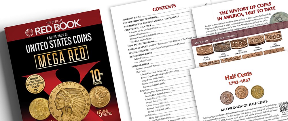 Mega Red X delivers the most comprehensive and fully updated U.S. coin catalog available today. This supersized companion to the Official Red Book® features more coins, more varieties, deeper pricing, and fresh research—including a landmark special feature covering more than 130 years of $5 Half Eagle gold coins (1795–1929).