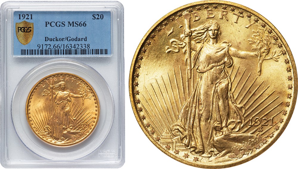 The PCGS graded MS66, Crawford-Morse 1921 was auctioned for $1,092,500 on November 3, 2005, and has been in the same collection ever since. In my opinion, it is the finest known 1921 Saint.