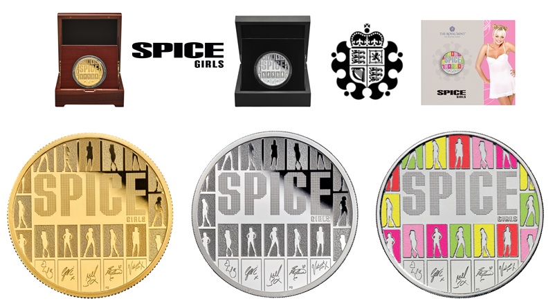 Available from the 3rd March, the BU Cupro-nickel coins are presented in a blister-pak type folder with illustrations and informative text about the Spice Girls. The Royal Mint’s Music Legends offers collectors and fans alike to choose their favourite Spice Girl with five separate bold and unique packaging designs for the Brilliant Uncirculated Colour Coin. Each pack showcases a different member of the group. The silver proof and colour strikes are presented in a Perspex Lucite display case enabling viewing from the obverse and reverse accompanied with a certificate of authenticity. The silver proof strikes are encapsulated and presented in black branded custom cases and accompanied with a numbered certificate of authenticity. The proof gold coins are encapsulated and presented in gloss-polished hardwood custom cases accompanied with a certificate of authenticity. For additional information, please visit the e-webshop of the Royal Mint.