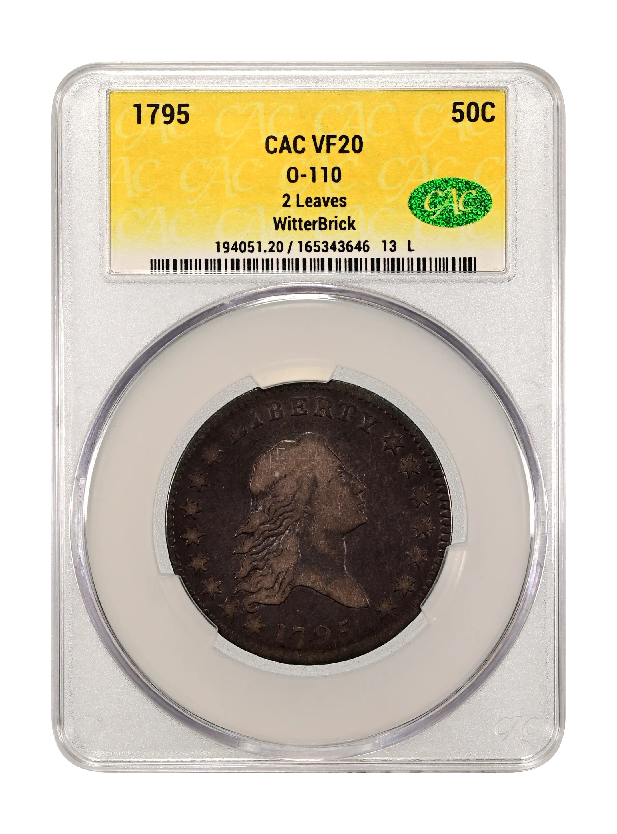 1795 50C 2 Leaves, O-110, T-21, R.3, VG10 PCGS. CDN: $2,000 Whsle. Bid for NGC/PCGS VG10. Mintage 299,680....
