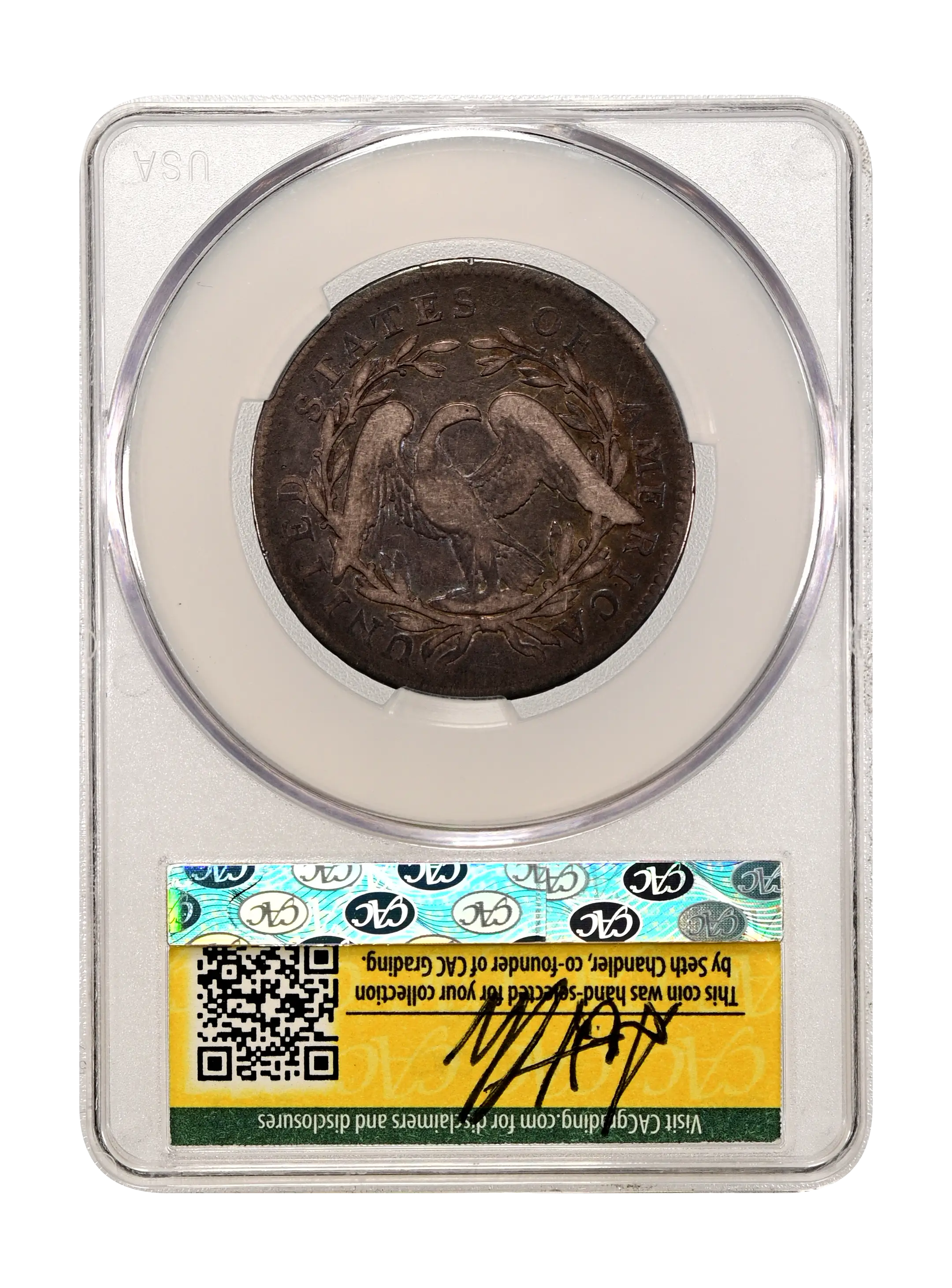 Obverse: The original design of Liberty, facing right, with hair flowing as if facing a slight breeze. 8 and 7 stars on the left and right periphery, respectively with the word LIBERTY across the top and the date positioned in the bottom center.